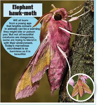 Please see the latest Elephant Hawkmoth species page with complete life cycle photographs and information on this link the Elephant Hawkmoth The Elephant Hawkmoth and Small Elephant Hawkmoth two of the most colourful moths to be found in the British Isles were attracted to light last night. Gardens waste ground and woodland clearings Food. Here at UK Safari we often receive email messages.
